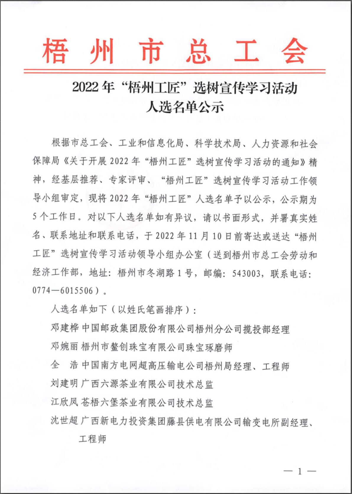 2022年“梧州工匠”選樹(shù)宣傳學(xué)習(xí)活動(dòng)人選名單公示