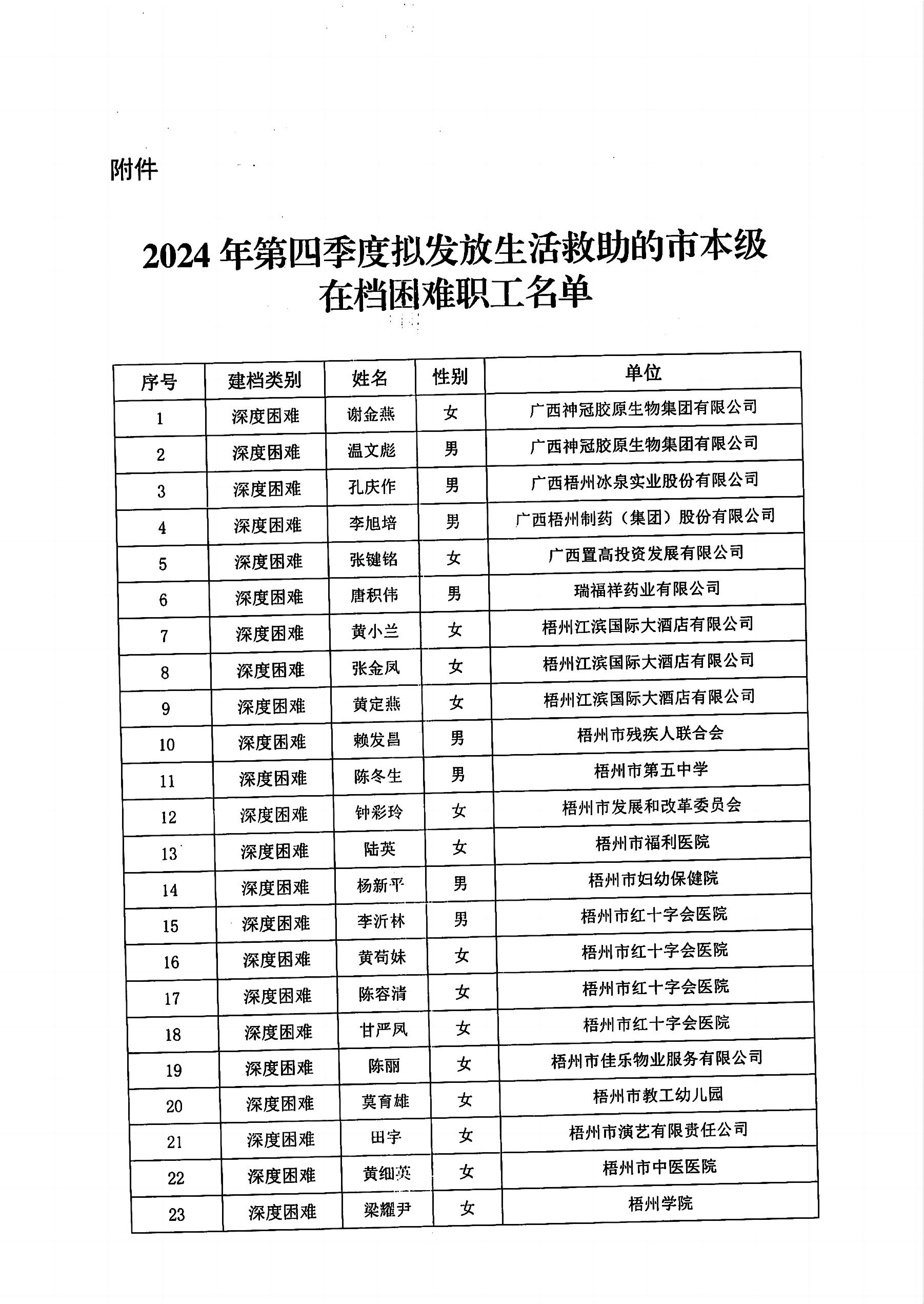2024年第四季度困難職工幫扶資金發(fā)放公示