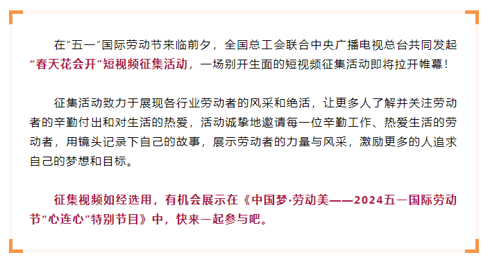 全總、央視發(fā)起“春天花會開” 短視頻征集!