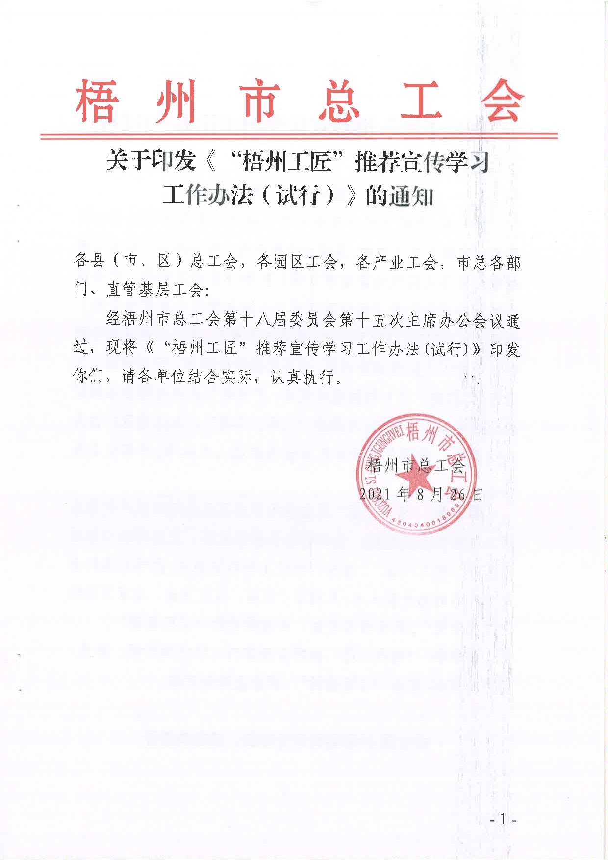 關(guān)于印發(fā)《“梧州工匠”推薦宣傳學習工作辦法(試行)》的通知